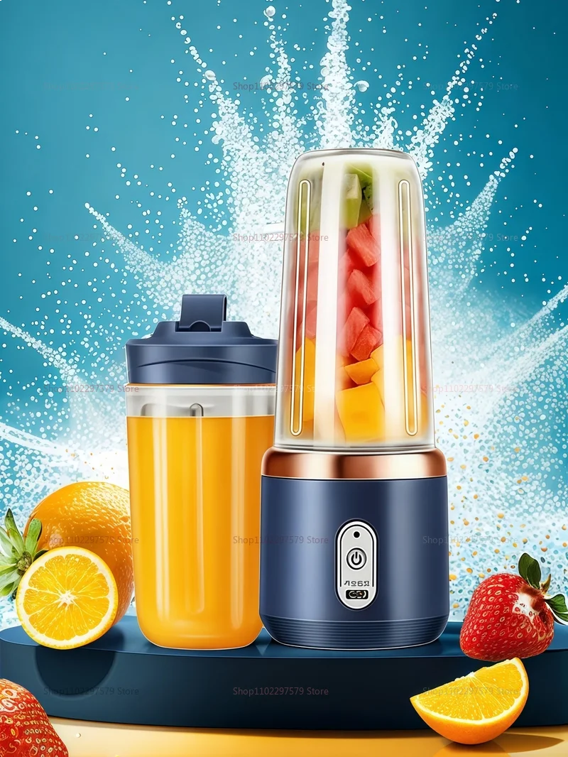 خلاط مزدوج متعدد الوظائف قابل للشحن USB - عصارة فواكه كهربائية محمولة بـ6 شفرات للعصائر والسموذي