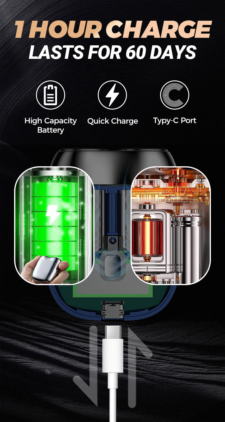 - ⚡ رأسان للحلاقة: حلاقة أسرع وأكثر كفاءة
